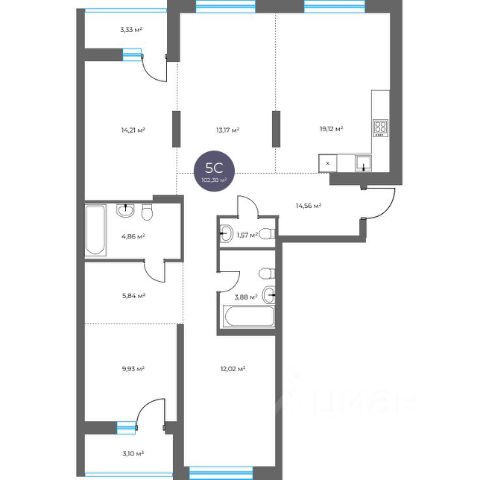 Продается 5-комн. квартира с отделкой White box. Квартира расположена на 1 этаже 18 этажного монолитно-кирпичного дома в миниполисе на Фадеева "Фора" от группы компаний "Поляков".