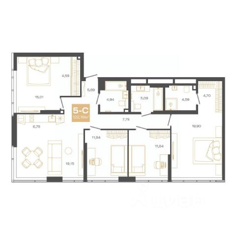 Продается 5-комн. квартира с отделкой White box. Квартира расположена на 1 этаже 18 этажного монолитно-кирпичного дома в миниполисе на Фадеева "Фора" от группы компаний "Поляков".