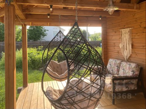 Так же за баней расположен бассейн, который устанавливается в летнее время, детская площадка и большая качеля.