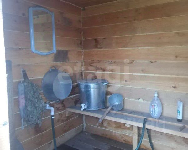 Одноэтажный дом из бруса 4*7,5 м, большая комната, кухня (вода заведена в дом), большая мощная дровяная печь (запас дров на 2 сезона), большая веранда 2*5,4 м. Пол в домике новый, перестелен в прошлом году. В летнее время домик красиво увит диким виноградом, что дает прохладу в жару.