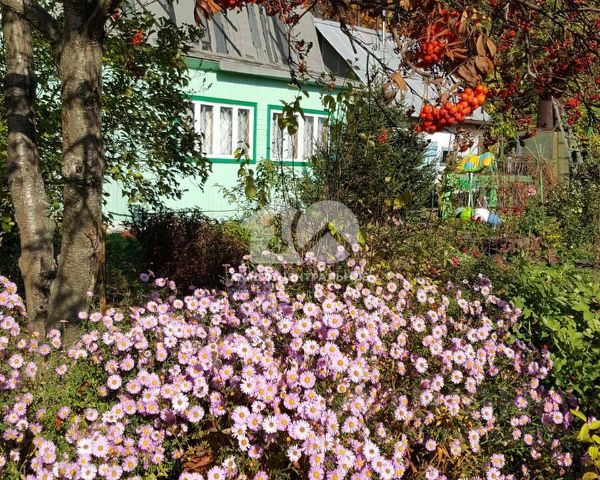 На общей территории расположены: газон (~5 сот.), 4 грядки земляники, парник (3х6, поликарбонат), вдоль забора высажены: малина ~ 10м, рябина, калина, ирга, сирень и др. декоративные саженцы.