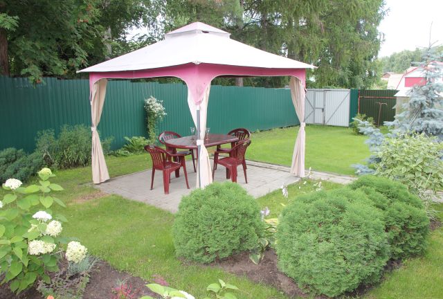Кроме дома-корабля, на участке есть сарай для хозяйственных принадлежностей, душевая кабинка с баком солнечного нагрева 120 л, скамейка под яблонями, теплица, шашлычное место, качели, туалет. Во дворе помещаются две машины.