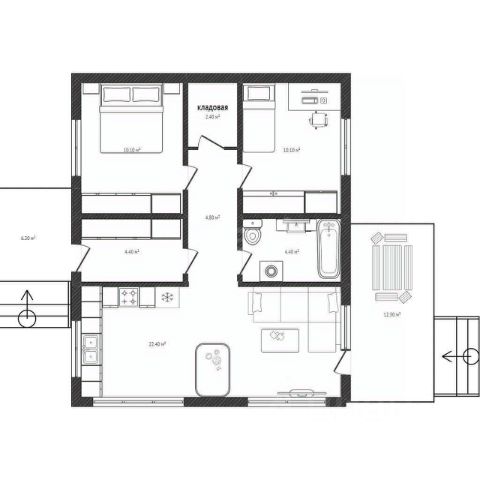 Терраса 27 кв.м. с выходом из гостиной и мастер - спальни.