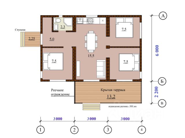 Просторная терраса обновлена антисептиком.