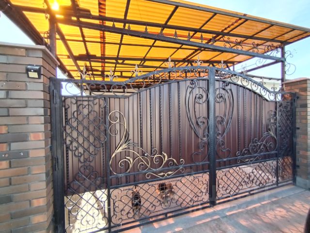 Участок большой, ухоженный, с фруктовыми посадками, огорожен забором из металлопрофиля с откатными воротами.