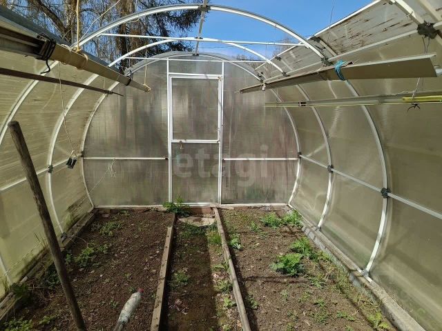 На участке есть баня из бруса, две теплицы, а также плодоносят вишня, ирга, смородина, жимолость, малина, клубника, земляника, ежевика и множество цветов, создающих по-настоящему дачную атмосферу.