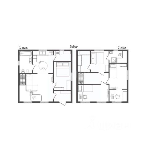 2 этаж: рабочий кабинет, спальня для родителей с гардеробной и зоной туалетного столика, детская комната для мальчика, детская комната для девочки, зимний сад, санузел, ванная комната с санузлом.