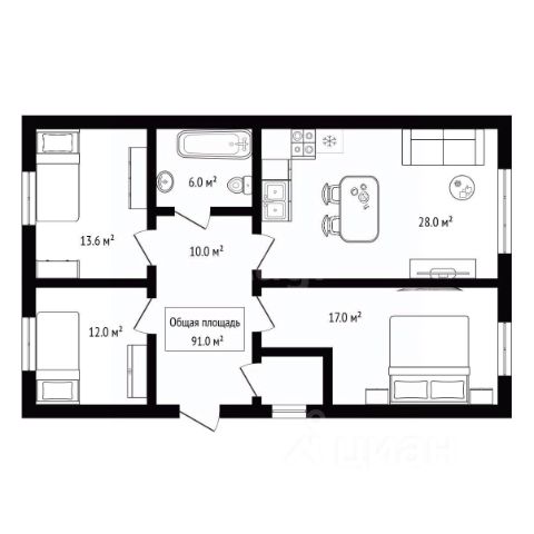 • ✅ Минимальная площадь: 91 м²