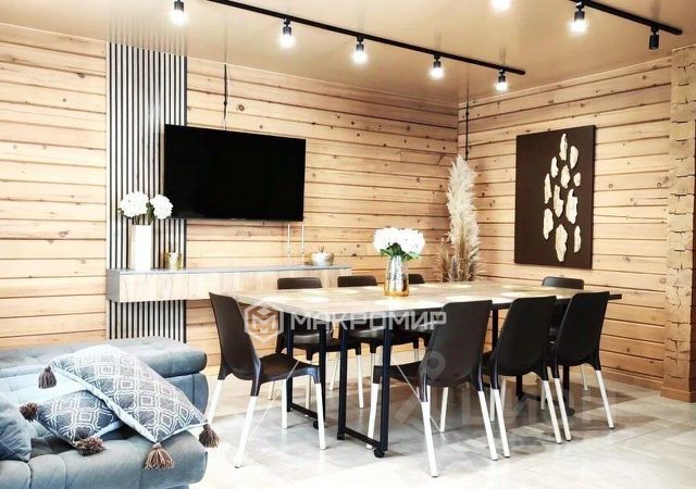 в дизайне восхищает всё! в коттедже на первом этаже:прихожая,большая кухня с обеденной зоной,гостиная,сауна со звездным небом, душевая,кедровая бочка,красивый санузел с ванной и раковиной.спортивный зал оборудован тренажерами,есть комната отдыха для гостей.