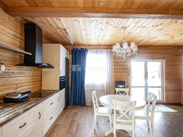 Дом из оцилиндрованного бревна сосны. Теплый, крепкий и очень атмосферный. Натуральное дерево создает особый микроклимат, наполняя дом целебным ароматом хвои и уютом. Здесь легко дышится, и по-настоящему отдыхаешь душой. Все коммуникации подведены для комфортного круглогодичного проживания. В доме продуманная планировка. Общая площадь дома с верандой 136 м.кв.