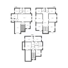 1 этаж: 3 комнаты, кухня, сан узел;