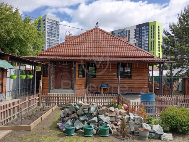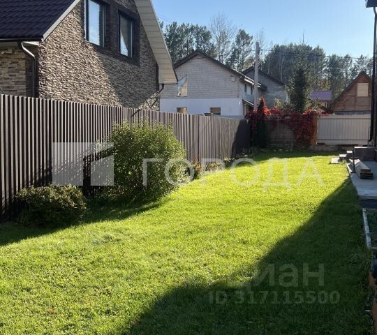 Участок ровный, на нем также размещены: крытая ограда 100 кв.м., зона отдыха, мангальная зона, место под каркасный уличный бассейн, огород, грядки, теплица, кусты смородины, малины, клубники, яблоня, туи, цветы, декоративный газон.