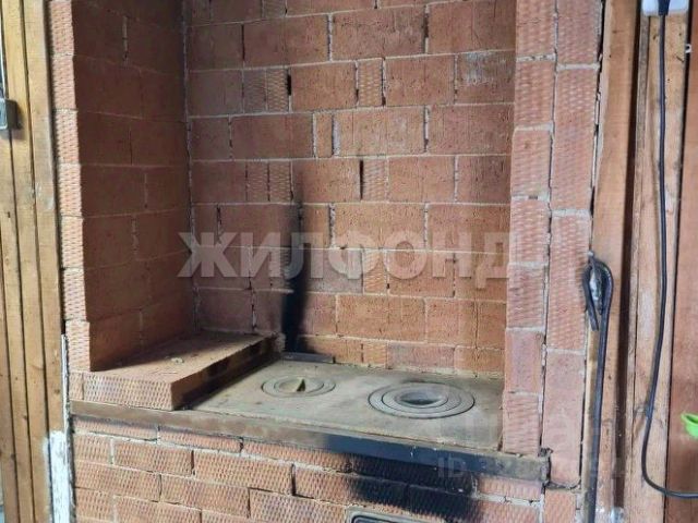 Двухэтажный деревянный дом, в доме комната и веранда, на первом этаже установлена русская печка, на которой можно готовить пищу и обогревать дом. В доме остаются кровати, холодильник, стол, скамейки, электроплита с духовым шкафом. В доме прохладно в летнюю жару. К дому пристроена дровница.