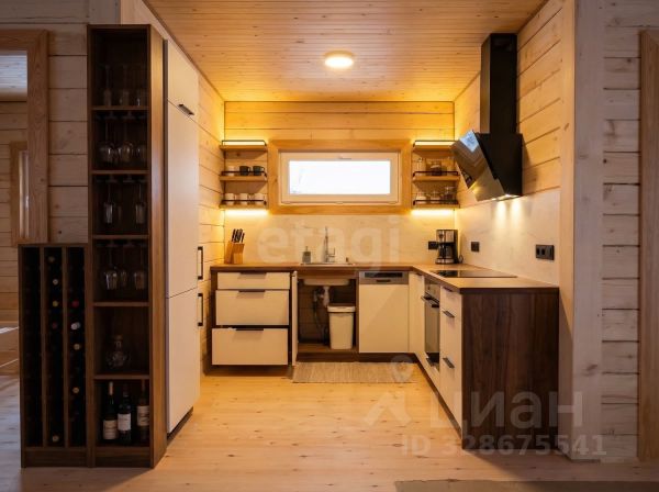 Из прихожей отдельный вход в кухню-гостинную, отдельный - в мойку с парной.