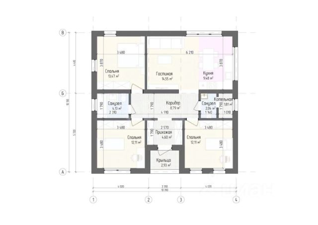 Прекрасная планировка: на первом этаже расположена уютная гостиная с камином 25,8 м2, кухня 24,2 м2, совмещенный санузел 5,2 м2, коридор 14,1 м2, лоджия 8,9 м2. На втором этаже спальня 25,7 м2, детская 17,4 м2, совмещенный санузел 5 м2, подсобное помещение 6,1 м2, лоджия 8,6 м2. Гараж 44,5 м2 с выходом на цокольный этаж, где находится: котельная 20,7 м2, подсобное помещение 38,7 м2, кладовая 6,6 м2. Площадь первого и второго этажа 156,8 м2. Общая площадь дома во вспомогательными помещениями составляет 317,1 м2 .