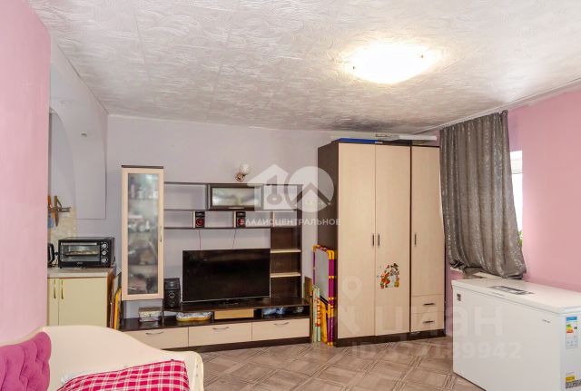 1-й этаж домика поделен на три зоны: кухня, каминный зал, зона отдыха. В зоне отдыха, которая отделена от каминного зала гобеленовыми шторами, стоит раскладной диван-книжка со снимающейся обшивкой, в данный момент она получена их химчистки, так что диван практически новый. Ещё в зоне отдыха расположен трельяж. Кроме камина в доме есть печь (в кухонной зоне), кирпичная труба проходит через второй этаж, обогревая и его. На кухне стоит тумбовый стол и небольшой холодильник. Есть вся посуда. 2-й этаж состоит из маленькой уютной комнатки с тумбочкой, деревянной 1-спальной кроватью и большой террасы - палубы. Палуба тоже отремонтирована и перекрыта лиственницей.