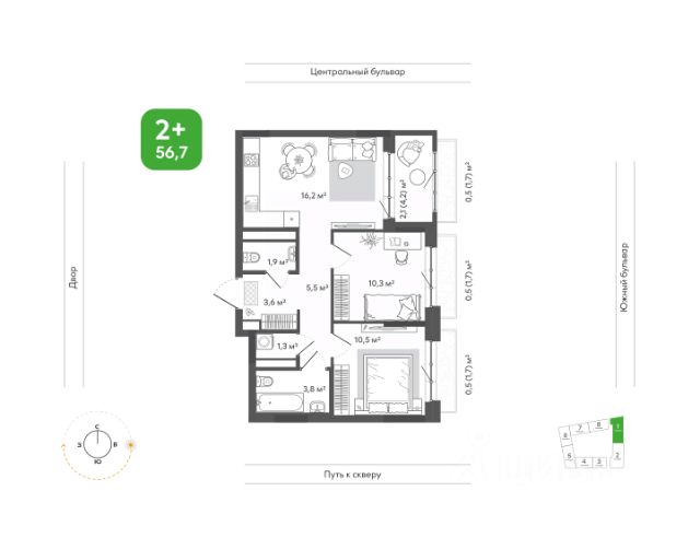 Квартира, в которой хочется жить, творить и отдыхать Просторная кухня-гостиная позволит удобно готовить, принимать гостей или отдыхать после долгого дня Отдельная спальня с выходом на лоджию и зоной для хранения — уголок комфорта и уединения. Санузел — просторный и функциональный. Достаточно места для всей необходимой сантехники, а грамотная планировка делает пространство удобным Прихожая, плавно переходящая в холл, с вместительной зоной для системы хранения поможет поддерживать порядок, обеспечивая места для множества нужных вещей.