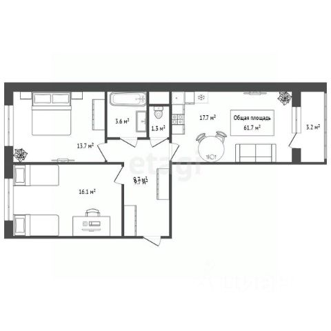 c удoбнoй плaнировкой на двe cтopоны.