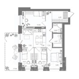 * Возможность организовать просторную кухню-гостиную и три отдельные спальни — идеальный вариант для семьи.