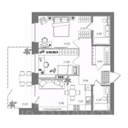 * Две лоджии: одна с выходом из кухни-гостиной, вторая — из спальни.