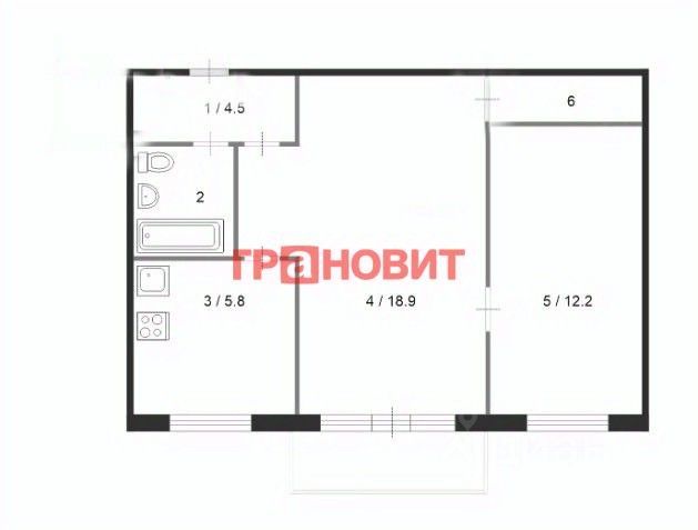 большая, светлая, полноценная 2-х комнатная квартира, 44.7 кв.м., с отличной планировкой!