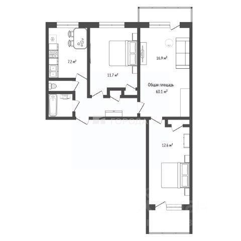 Функциональная планировка - комнаты правильной прямоугольной формы, большие окна добавляют света и сделают квартиру еще привлекательнее.