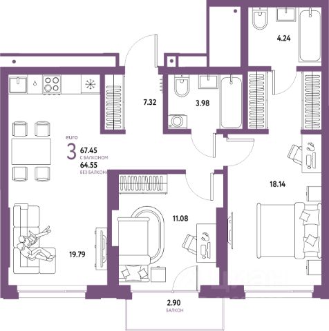 Эксклюзивные резиденции для избранных в самом центре Новосибирска. Преимущества: - Панорамные виды на центр города - Лоты с террасами - Лоты с дровяными каминами - Подземный паркинг на 80 м/м - Современное лобби с ресепшен - В самом центре Новосибирска - Функциональные планировки - Возможность объединения нескольких лотов - Лоты от 45 до 160 м² Способы покупки: - Индивидуальные предложения при оплате 100% - Беспроцентная рассрочка на год с первоначальным взносом 30% - Лизинг от партнеров - Возврат НДС Продается 3х- комн. евро резиденция. Объект расположен в элитном клубном комплексе (Чаплыгина 54). Общая площадь составляет 64,3 кв.м. Проект расположен в самом сердце Новосибирска, в шаговой доступности от знаковых культурно-исторических мест столицы Сибири, на пересечении улиц Красный проспект и Чаплыгина. Современное здание эффектно вписывается в городские ландшафты и гармонирует с отреставрированной исторической аптекой. Расположение дома считается редкой локацией, поскольку в городском центре почти не осталось свободных участков. В доме предусмотрены высокотехнологичные инженерные коммуникации. За безопасность отвечают видеодомофоны FERMAX и автоматизированная система охраны Bolid. В помещениях установлены немецкие окна Schuco Изысканная отделка интерьеров лобби и холлов жилых этажей выполнена в стиле ар-деко. Лобби украшает дизайнерская мебель, мрамор и натуральное дерево. Общественные зоны украсили зеркала, светильники, молдинги и акцентные элементы из латуни. Настенные панели и входные двери выполнены из шпонированной древесины ценных тропических пород. Все апартаменты передаются с предчистовой отделкой, позволяющей обустроить дизайн по собственным вкусам. Функциональные и удобные планировки апартаментов дополняются высокими потолками в 3м и великолепными панорамными видами на Новосибирск. Преимуществом проекта является возможность объединить несколько лотов в единое жилое пространство.