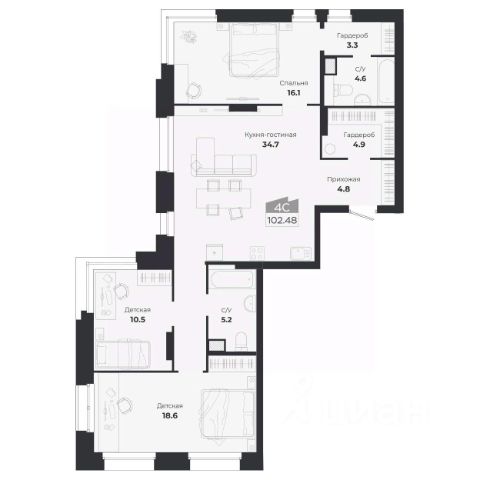 Продаётся 4-комнатная квартира в строящемся доме (Дом 19, секции 2-5), срок сдачи: IV-кв. 2027, общей площадью 102.27 кв.м., на 3 этаже. Расположение, транспортная доступностьНовый жилой комплекс комфорт-класса "Город-парк Ясный Берег" строится на левом берегу реки Обь, но при этом совсем недалеко от центра Новосибирска. Новый микрорайон расположится рядом с проездом Энергетиков, который переходит в Дмитровский мост. Добраться до самого центра мегаполиса совсем несложно: дорога на автомобиле займет всего десять минут в зависимости от загруженности магистралей (расстояние до исторического центра чуть больше 4 км).На общественном транспорте до центральных районов можно доехать за двадцать пять минут (время в пути зависит и от дорожного трафика, от выбранного маршрута и точного места назначения). В шаговой доступности от ЖК "Город-парк Ясный Берег" расположена остановка "Мост", откуда курсируют автобусы и маршрутные такси в разные районы Новосибирска.Рядом с новым ЖК проходят крупнейшие транспортные артерии города Октябрьский мост, проезд Энергетиков, улицы Ватутина, Котовского, Станционная и Немировича-Данченко, так что добраться в любую точку города не составит труда как на машине, так и на общественном транспорте.ИнфраструктураЛенинский район, где возводится "Ясный Берег", считается престижным, так что уже сейчас новые владельцы квартир города-парка смогут наслаждаться комфортной городской жизнью в тихом микрорайоне. В шаговой доступности: детские садики, общеобразовательные школы, магазины, аптеки, сетевые супермаркеты, кафе, аптеки, медицинские учреждения. За пять минут можно доехать до строительного гипермаркета "Леруа Мерлен". Вокруг много мест для отдыха, занятий спортом, прогулок с детьми.Впрочем, согласно концепции, в недалеком будущем жителям "Города-парка Ясный Берег" не понадобится часто покидать пределы любимого микрорайона, поскольку новый жилой комплекс будет представлять собой "город в городе". На территории ЖК будет большой парк с пешеходными и велосипедными дорожками, местами для отдыха, игровыми зонами. Отличительной особенностью станет детская гоночная трасса точный аналог сочинской "Формулы-1".На территории "Города-парка Ясный Берег" построят детские площадки с современным игровым оборудованием, школы, развивающие секции и кружки, детские сады (один построен и уже работает). В городе-парке будут и огороженные места для курения, и территории для прогулок с домашними питомцами. В микрорайоне предусмотрено много зон с wi-fi.Надежность застройщикаЗастройщиком проекта является СК "Аква Сити", основанная в 2012 году. Генеральным подрядчиком компания "Метаприбор". В 2016 году "Метаприбор" занял первое место в области по объемам введенного в эксплуатацию жилья (благодаря своевременной сдаче двух корпусов в ЖК "Город-парк Ясный Берег").Эти компании осуществляют полный цикл строительства от выбора участков под застройку до внутренней отделки, ввода в эксплуатацию и благоустройству территории новых ЖК.И "Аква Сити", и "Метаприбор" им