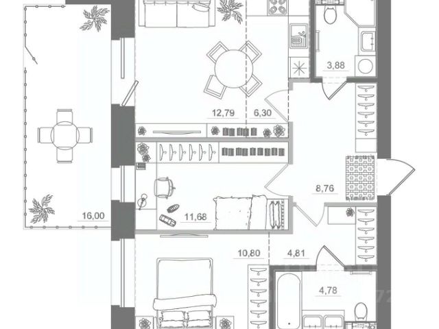Квартира теплая, светлая, окна выходят не на подъезд. Высокий первый этаж, просторный коридор, изолированные комнаты 17,1 кв.м и 16,3 кв.м, кухня 9,4 кв.м. В квартире остается кухонный гарнитур, шкаф-купе в спальне, втроенный шкаф в коридоре, водонагреватель.