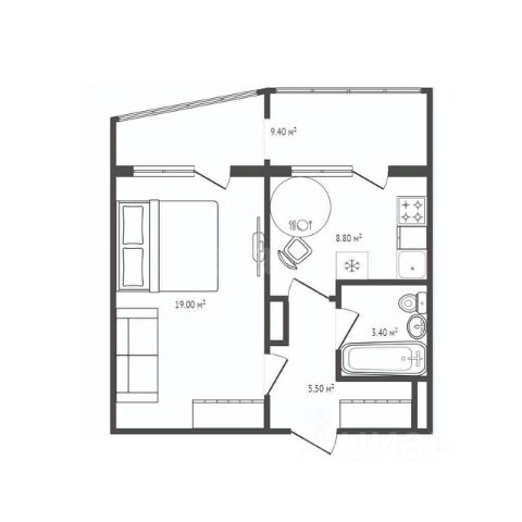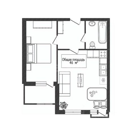 Квартира имеет грамотно продуманную планировку на две стороны, которая позволяет выделить личное пространство для хозяев и зону для совместного общения.