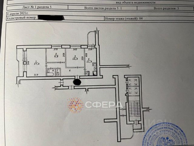 Продам полноценную трёхкомнатную квартиру общей площадью 59,2м.кв.