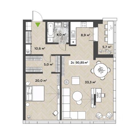 • ✅ Минимальная площадь: 90,9 м²