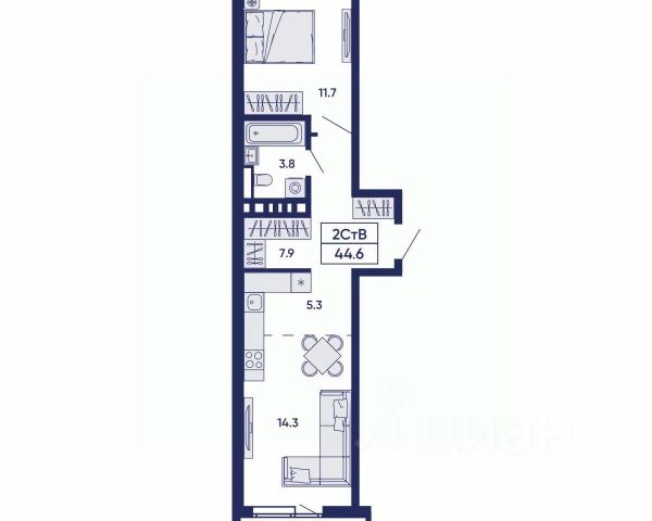 Квартира отличается позитивной и уютной атмосферой, а также весьма продуманной планировкой, которая идеально подходит для создания уникального интерьера и комфортного проживания.