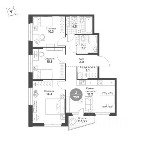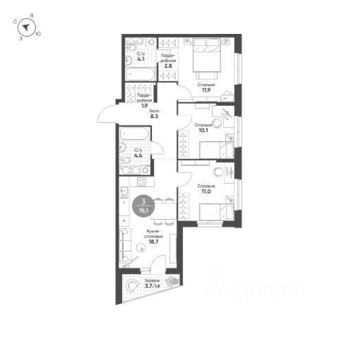 Продаётся 2-комнатная квартира в строящемся доме (Корпус 1), срок сдачи: II-кв. 2026, общей площадью 73.3 кв.м., на 12 этаже. "Счастье в Кольцово" - новый жилой комплекс Группы "Эталон" в р. п. Кольцово Новосибирской области. Комплекс будет возведен в Новосибирской городской агломерации, всего в 25 км от Новосибирска. Предполагаемая реализуемая площадь будущего комплекса составит 280 тыс. кв. м. Первая очередь строительства включает в себя 8 корпусов переменной этажности от 7 до 16 этажей. Район Кольцово, в котором будет возведен жилой комплекс, обладает всей необходимой инфраструктурой и является одной из ведущих научно-производственных площадок региона. Здесь расположено более десятка исследовательских организаций и инновационных компаний, занимающихся разработкой и производством в сфере биотехнологий. Участок примыкает к жилым кварталам и лесному массиву. В 25 минутах езды находится Академгородок и бизнес-инкубатор Академпарка. Завершение всех очередей проекта запланировано на 4 квартал 2029 года.