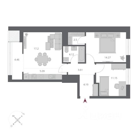 Дом монолитный, 17 этажей, один подъезд — спокойный, малонаселенный подъезд и ухоженные общие зоны. Во дворе детские и спортивные площадки, гостевая парковка, благоустроенная территория.