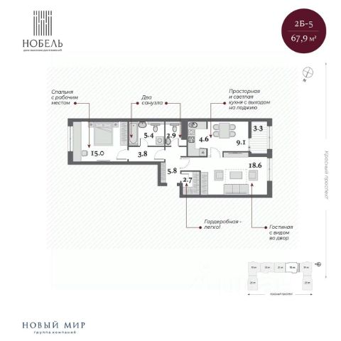 Дом сдан, приглашаем на экскурсию! "Нобель" на Красном проспекте в 2025 году стал победителем в номинации Жилая недвижимость. Бизнес-класс. Регионы (Urban Awards 2025), в 2024 признан Самым инвестиционно-привлекательным проектом УФО+СФО+ДФО (Urban Awards 2024). Дом "Нобель" в Новосибирске спроектирован компанией "Новый мир" совместно с международной командой архитекторов из Великобритании, Италии и Сербии. Уникальность проекта, в том, что при строительстве здания в центральной локации города удалось сохранить более 200 деревьев ценных хвойных пород на территории комплекса. При этом в продукте было сформировано более 50 вариантов функциональных планировочных решений. И все это в великолепной архитектурной форме в стиле ар-деко. Общая площадь территории 2 гектара! Именно это позволило специалистам компании "Новый мир" спроектировать уникальный двор-парк с фонтаном и колоннадой. Архитектура Один из принципов нашей компании: сохранять все лучшее в каждой локации. Архитектурное окружение дома "Нобель" представлено сталинской неоклассикой, именно поэтому специалисты компании "Новый мир" выбрали стиль ар-деко, который называют наследником неоклассицизма и модернизма. "Нобель" — это архитектура, устремленная вверх. 5 башен с величественными шпилями, благородный фасад из натурального гранита, увеличенная площадь остекления с применением архитектурного стекла. И — чего не встретишь в других проектах, — роскошная гранитная прогулочная колоннада — второй уровень благоустройства. Двор Ландшафтный дизайн стилистически продолжает архитектурный замысел ар-деко: строгая закономерность, смелые линии, геометрические узоры, отсутствие ярких оттенков. Пространство двора-парка разделено на две части. Они отделены друг от друга колоннадой, по которой можно прогуливаться на высоте 10 метров и любоваться Красным проспектом. Зоны отдыха, игровые площадки, беседки соединены дорожками и создают один из узнаваемых узоров европейского стиля. Хвойные гиганты и фонтан добавляют особый шик. Холлы Семь парадных холлов дома "Нобель" облицованы широкоформатным итальянским керамогранитом. Мягкий свет, парящие потолки, дизайнерские люстры, бесшумные скоростные лифты, — каждый элемент создает атмосферу дорогого уюта и респектабельности. В доме предусмотрен консьерж-сервис для удобства жителей и гостей. Отделка White Box Квартиры дома Нобель сдаются в предчистовой отделке white box. Она сделана с той же тщательностью и вниманием к малейшим деталям, как и все другие работы по проекту. Квартиры полностью готовы к чистовой отделке. Продается квартира на 13 этаже в Новосибирской области.
