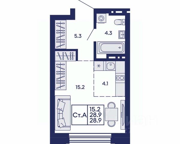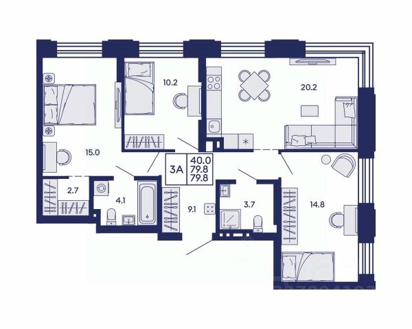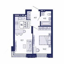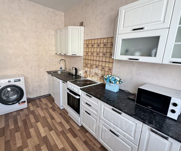 Новому собственнику остается: два кондиционера, видеодомофон, кухонный гарнитур со встроенной бытовой техникой (измельчитель в раковине, варочная панель, вытяжка, духовой шкаф, микроволновая печь, посудомоечная машина), пуфик и два встроенных шкафа в прихожей, встроенный шкаф в комнате, полки и шкаф в ванной комнате.