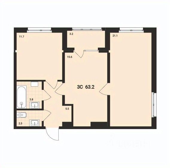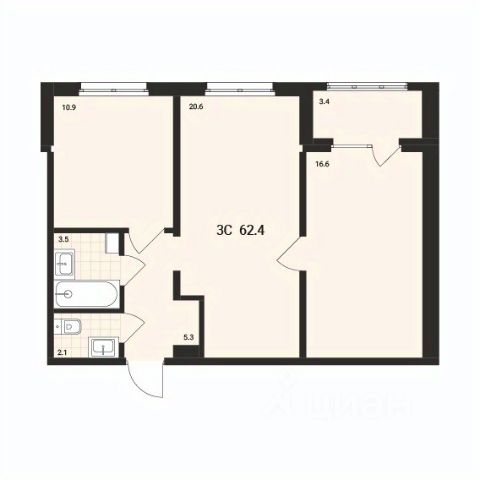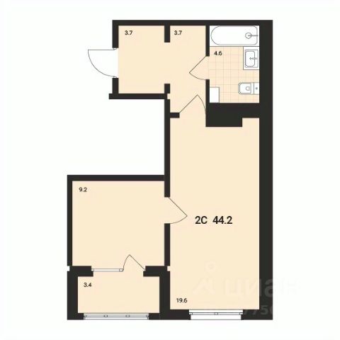 Большая гостиная 18,1м², приватная спальня 10м². Пространство комнат легко можно зонировать и она отлично подойдёт для жизни семьи с ребенком.