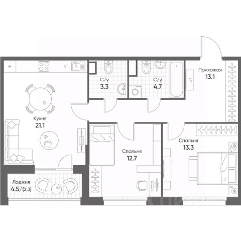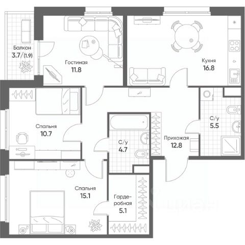 Новая мебель и бытовая техника (встраиваемые микроволновая печь Bоsсh, посудомоечная машина Zаnussi, холодильник LG GR-N266LLР, вытяжка полновстраиваемая Mоnshеr INNА 55, а также электрическая варочная поверхность MАUNFЕLD, электрический духовой шкаф Bоsсh), системы шкафов-купе. На окнах - рулонные шторы. Все - в идеальном состоянии.