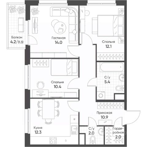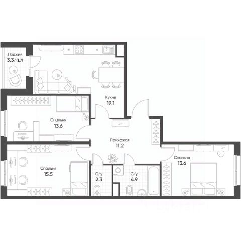 3-комнатная студия в ЖК "Никольский" с современным качественным ремонтом. Сегмент "Заходи и живи". Комфортный 6 этаж. 2 санузла. Обилие встроенных шкафов.