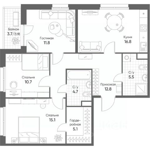 Продаётся 3-комнатная квартира в строящемся доме (Корпус 1), срок сдачи: II-кв. 2026, общей площадью 86.3 кв.м., на 6 этаже. "Счастье в Кольцово" - новый жилой комплекс Группы "Эталон" в р. п. Кольцово Новосибирской области. Комплекс будет возведен в Новосибирской городской агломерации, всего в 25 км от Новосибирска. Предполагаемая реализуемая площадь будущего комплекса составит 280 тыс. кв. м. Первая очередь строительства включает в себя 8 корпусов переменной этажности от 7 до 16 этажей. Район Кольцово, в котором будет возведен жилой комплекс, обладает всей необходимой инфраструктурой и является одной из ведущих научно-производственных площадок региона. Здесь расположено более десятка исследовательских организаций и инновационных компаний, занимающихся разработкой и производством в сфере биотехнологий. Участок примыкает к жилым кварталам и лесному массиву. В 25 минутах езды находится Академгородок и бизнес-инкубатор Академпарка. Завершение всех очередей проекта запланировано на 4 квартал 2029 года.