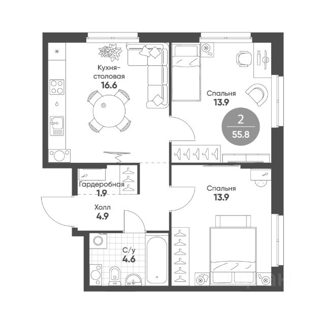 Предлагаем вашему вниманию просторную 2-х комнатную квартиру в мкр 4а в Кольцово.
