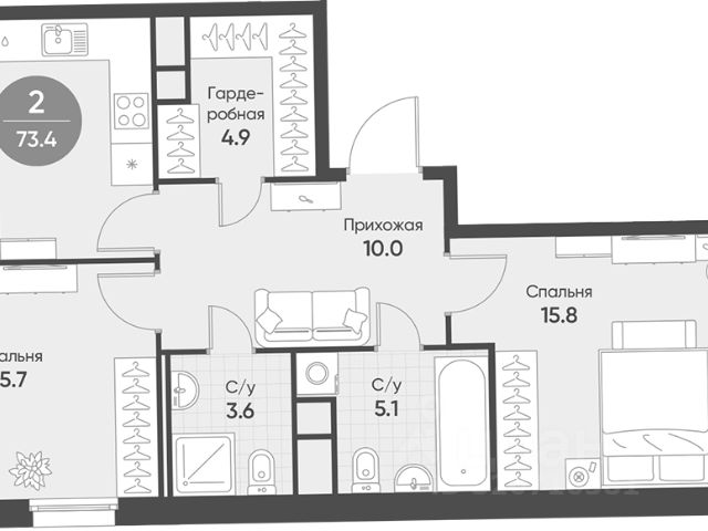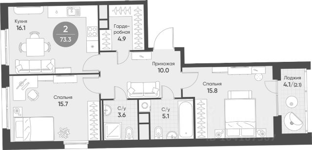Очень удачная планировка с большой кухней и выходом на лоджию, просторная спальня со своей гардеробной комнатой и жилая комната, которую вы можете использовать по своему усмотрению как гостиную или спальню, раздельный сан.узел, коридор.