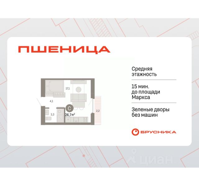 Обмен квартиры на новую. Предложение от застройщика. По всем вопросам звоните в офис продаж, мы вам все подробно расскажем! Просторная однокомнатная студия с предчистовой отделкой в ЖК "Пшеница" на 2 этаже. Общая площадь: 20.68 кв.м., площадь гостиной 12.8 кв.м., из которых 5 кв.м. выделено под кухонную зону. Все окна выходят на одну сторону. В квартире один балкон, один совмещенный санузел. Высота потолков 2.82 м. Дом монолитный, многоподъездный, переменной этажности, от 8 до 9 этажей. Квартира находится в 5-й секции высотой 9 этажей в корпусе 6-1. На этаже 6 квартир. В подъезде 1 пассажирский и 1 грузовой лифт. Окончание строительства - 3 квартал 2028 года. Оформление сделки по договору долевого участия. Студия в жилом районе "Пшеница". Особенности планировки: балкон, предчистовая отделка. квартиры в нашей базе: ПШЦ06.1-Ж5.2.3. "Пшеница" расположена в третьем микрорайоне посёлка Краснообск, на пересечении улицы Центральная и Советского шоссе. Посёлок был создан в 1970 году. Архитекторы создали в Краснообске все условия для научной деятельности, быта, культурного развития, отдыха и поддержания здоровья жителей. Но их проект так и не был полностью реализован. Сегодня рядом с проектом "Пшеница" расположены остановки транспорта, выезды на транспортные магистрали. До Бугринского моста — 15 минут на автомобиле. До станции метро "Площадь Маркса" — 35 минут на автобусе, 20 минут на автомобиле. В 1520 минутах от жилого района расположен крупный ТРЦ "Мега". Внутри посёлка сформирована необходимая инфраструктура: лицей, школы, детские сады, больница, поликлиника, частные медицинские центры, магазины, спортивные клубы. Рядом находится лесопарк им. академика Синягина. Район "Пшеница" — это квартальная среднеэтажная застройка с закрытыми от машин безопасными дворами. В основу проекта мы заложили три принципа. Первый — разнообразие и плотность. Для нас важно создать среду, где человек в шаговой доступности мог бы получить любой сервис. Второй принцип — сохранение истории места, уважение к идеям первых архитекторов ВАСХНИЛа и локальной идентичности. Достопримечательностью района станет круговой бульвар. Третий принцип — связанность. Район постепенно станет единым целым за счет организации плотной сети вело- и пешеходных маршрутов, формирования разнородных общественных пространств. Если Вы - риелтор, пожалуйста, за более подробной информацией обратитесь на горячую линию на нашем официальном сайте. #ZSBasI