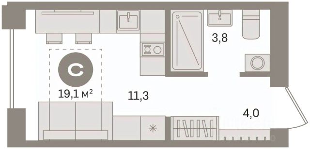 Однокомнатная студия от застройщика с предчистовой отделкой в ЖК "Пшеница" на 7 этаже. Общая площадь: 24.24 кв.м., площадь гостиной 11.3 кв.м., из которых 5 кв.м. выделено под кухонную зону. Все окна выходят на одну сторону. В квартире один балкон, один совмещенный санузел. Терраса представляет собой роскошную зону отдыха для проведение вечеров в кругу семьи и друзей или организация вечеринок. Высота потолков 2.82 м. Дом монолитный, трехподъездный, переменной этажности, от 6 до 9 этажей. Квартира находится во 2-й секции высотой 9 этажей в корпусе 2-2. На этаже 4 квартиры. В подъезде 1 грузовой лифт. Окончание строительства - 4 квартал 2027 года. Оформление сделки по договору долевого участия. Студия в жилом районе "Пшеница". Особенности планировки: балкон, предчистовая отделка. квартиры в нашей базе: ПШЦ02.2-Ж2.7.2. "Пшеница" расположена в третьем микрорайоне посёлка Краснообск, на пересечении улицы Центральная и Советского шоссе. Посёлок был создан в 1970 году. Архитекторы создали в Краснообске все условия для научной деятельности, быта, культурного развития, отдыха и поддержания здоровья жителей. Но их проект так и не был полностью реализован. Сегодня рядом с проектом "Пшеница" расположены остановки транспорта, выезды на транспортные магистрали. До Бугринского моста — 15 минут на автомобиле. До станции метро "Площадь Маркса" — 35 минут на автобусе, 20 минут на автомобиле. В 1520 минутах от жилого района расположен крупный ТРЦ "Мега". Внутри посёлка сформирована необходимая инфраструктура: лицей, школы, детские сады, больница, поликлиника, частные медицинские центры, магазины, спортивные клубы. Рядом находится лесопарк им. академика Синягина. Район "Пшеница" — это квартальная среднеэтажная застройка с закрытыми от машин безопасными дворами. В основу проекта мы заложили три принципа. Первый — разнообразие и плотность. Для нас важно создать среду, где человек в шаговой доступности мог бы получить любой сервис. Второй принцип — сохранение истории места, уважение к идеям первых архитекторов ВАСХНИЛа и локальной идентичности. Достопримечательностью района станет круговой бульвар. Третий принцип — связанность. Район постепенно станет единым целым за счет организации плотной сети вело- и пешеходных маршрутов, формирования разнородных общественных пространств. Если Вы - риелтор, пожалуйста, за более подробной информацией обратитесь на горячую линию на нашем официальном сайте. #zMeBw4