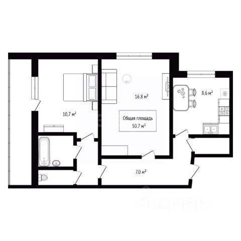 Квартира для семей, которые ценят комфорт и моменты объединения Просторная кухня-гостиная объединяет зону для кулинарных экспериментов и уютное пространство для общения Мастетр-спальня с собственной ванной и местом под шкаф-купе — уголок комфорта и уединения. Детская комната — светлая, уютная и функциональная. Достаточно места для игр, учёбы и отдыха, чтобы ребёнок чувствовал себя комфортно, а вещи разместились на своих местах Второй санузел — просторный, со всей необходимой сантехникой и местом под стиральную машину позволяет сделать утро комфортным для всех членов семьи Функциональная прихожая с продуманной системой хранения помогает организовать порядок без лишних усилий и поддерживать пространство свободным от лишних вещей