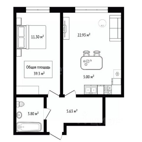 Общая площадь — 42,78 м².
