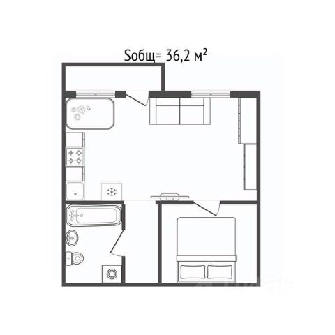 Квартира имеет грамотно продуманную планировку на две стороны, которая позволяет выделить личное пространство для хозяев и зону для совместного общения.