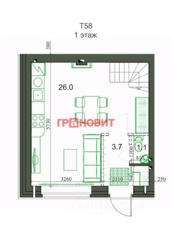4. Студия разделена на отдельную комнату и кухню, что сравнимо с отдельной однокомнатной квартирой.