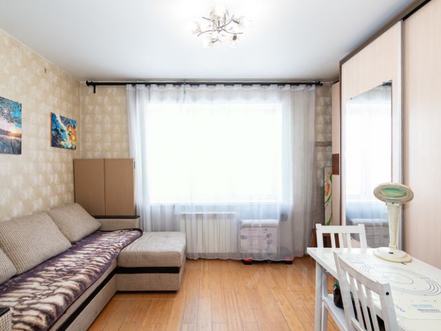 В стоимость квартиры входит встроенная мебель: качественная кухня с большим количеством секций, столешница из искусственного камня, износостойкие глянцевые фасады, доводчики (без бытовой техники), вместительный шкаф в прихожей во всю высоту, функциональный шкаф в жилой комнате.
